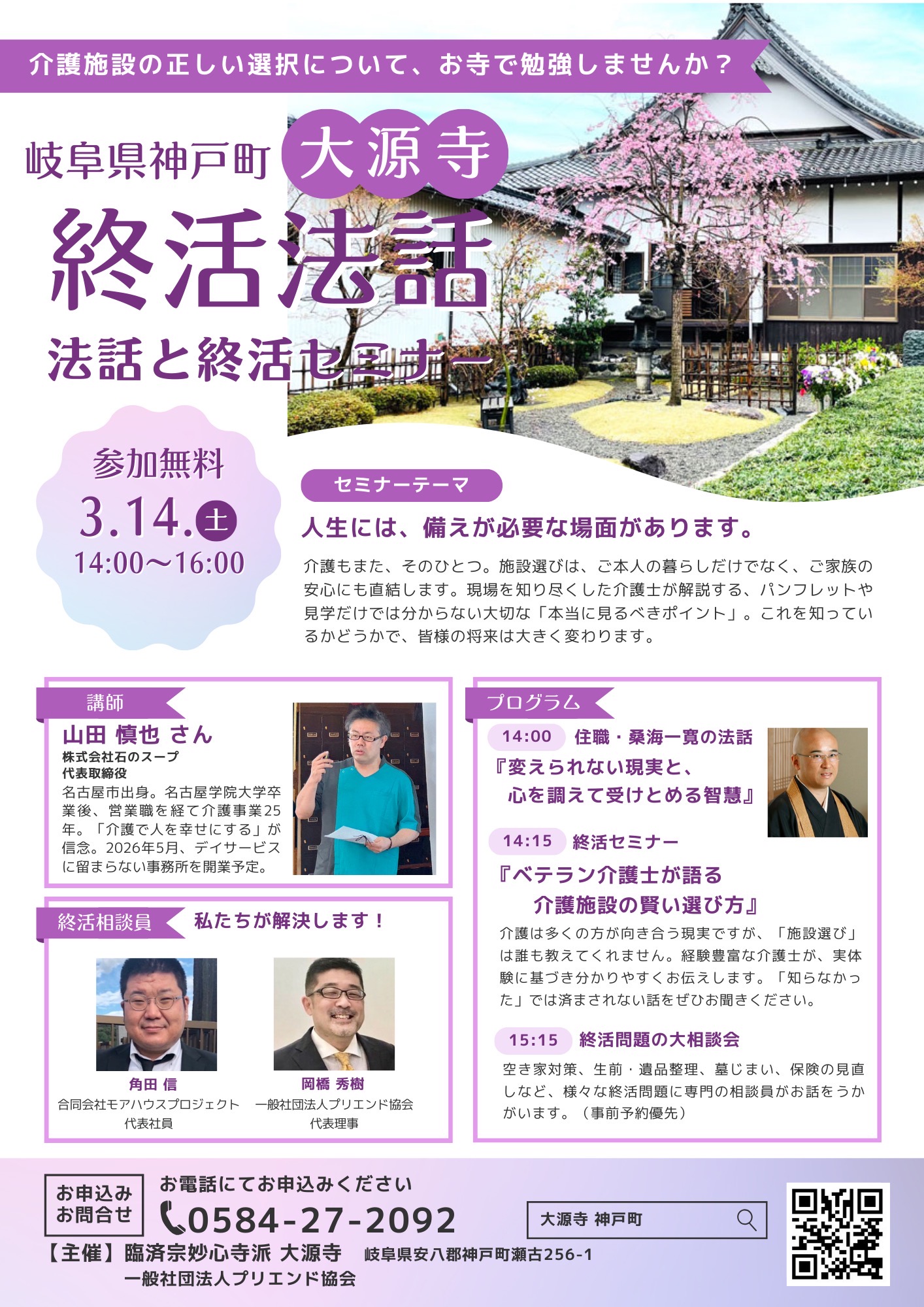 今年で3年目となる春季終活セミナーを開催します。 今回のテーマは介護の問題を取り上げます 2001年に介護保険制度ができるまでは、子や子の配偶者が両親の介護を行うことは当然のこととされました。 突然のように介護が必要な状況になって、介護離職をして収入が絶たれて、介護うつになってしまうケースがあるよう