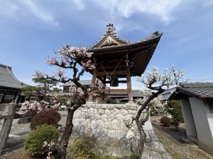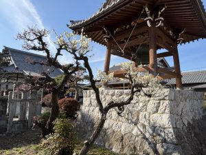永代供養墓にはお花が増えて、鐘楼前の梅の木もきれいに咲いています。