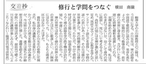 円覚寺まで伺って禅僧であったことをよかったと思いました。また実践第一の禅修行と言いますが、訳もわからないうちに修行や布教をすることは、曲解して間違った教えを伝えてしまう危険があると思いました。