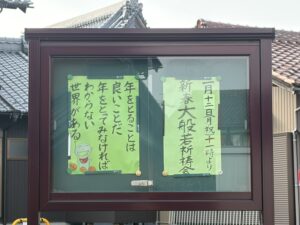道沿いの掲示板に、今月12日の大般若祈祷会の案内ポスターを貼りました。