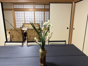 床の間に後藤瑞巌老師の墨蹟と、母が挿したお花を飾りました。