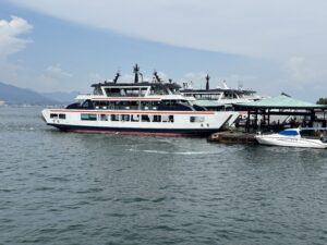 山陽本線の宮島口駅を降りて、船の乗り場に行って、すぐに宮島行きの船に乗りました。