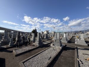 集落墓地に高さや面積を競うようにお墓が並び立つようになったのは、昭和35年以降であったようです。経済成長して、ご先祖さまに報恩の心を向けるのと、家門隆盛を願ってのことなのでしょう。