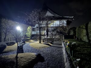 夕暮れ時にお墓の周りの見回りをしています。