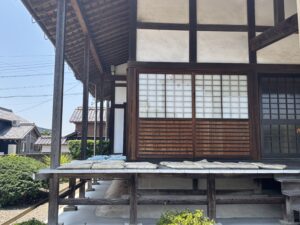 本堂の濡れ縁に、座布団を干しました。