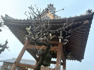 樹木葬墓地へ行って掃除をして、庭をぐるっと回っていると、梅の花が開花していました。春の訪れをいち早く知らせてくれます。