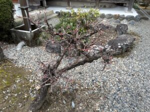 窓を開けると、くしゃみが出てきました。本堂の濡れ縁は黄砂か花粉なのかわかりませんが、砂のような粒子がかかっています。