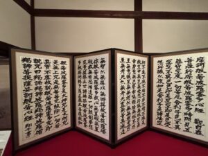 長慶院でのご葬儀の前に、妙心寺の法堂や大方丈で書家の金澤翔子さんの展示会が開催されていて、見学させていただきました。