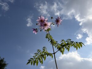 庭の隅には、皇帝ダリアが咲いて、こちらを見下ろしていました。