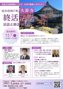 12月7日の日曜日の午後2時から、終活セミナーを開催します。