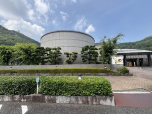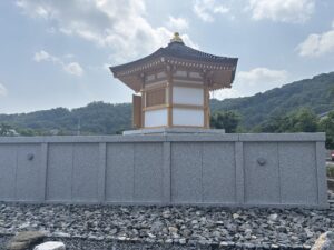 よく剪定された樹木を眺めて帰路につくと、隣のお寺の納骨堂がそびえ立っていました。
